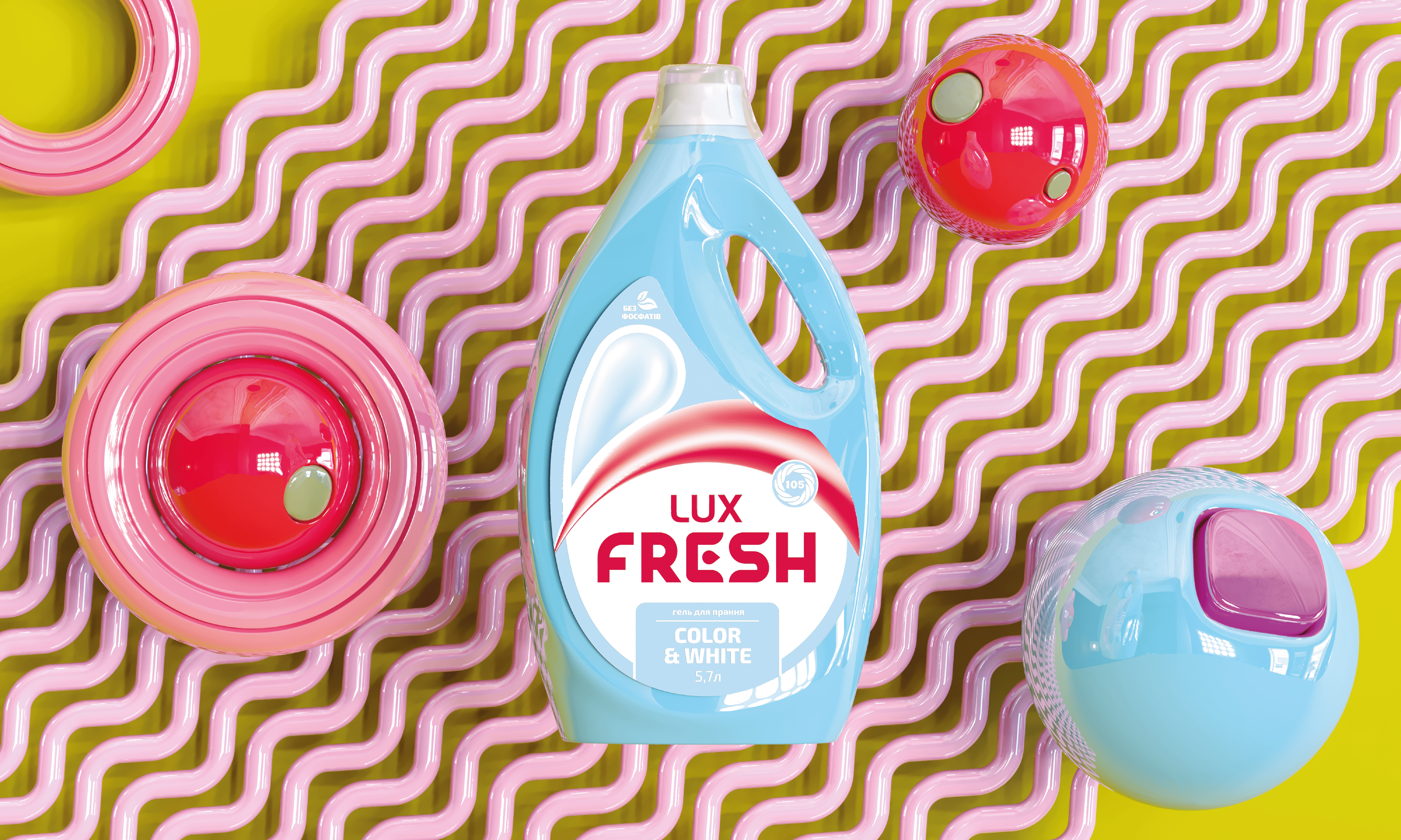🟪 Ми створили Lux Fresh, щоб змінити цю історію. Яскраві контрастні кольори в айдентиці, соковиті графічні хвилі на упаковці – усе, щоб додати енергії навіть звичайним справам. Lux Fresh не просто очищує, а фарбує настрій, перетворюючи рутину на щось легше, свіжіше і яскравіше.